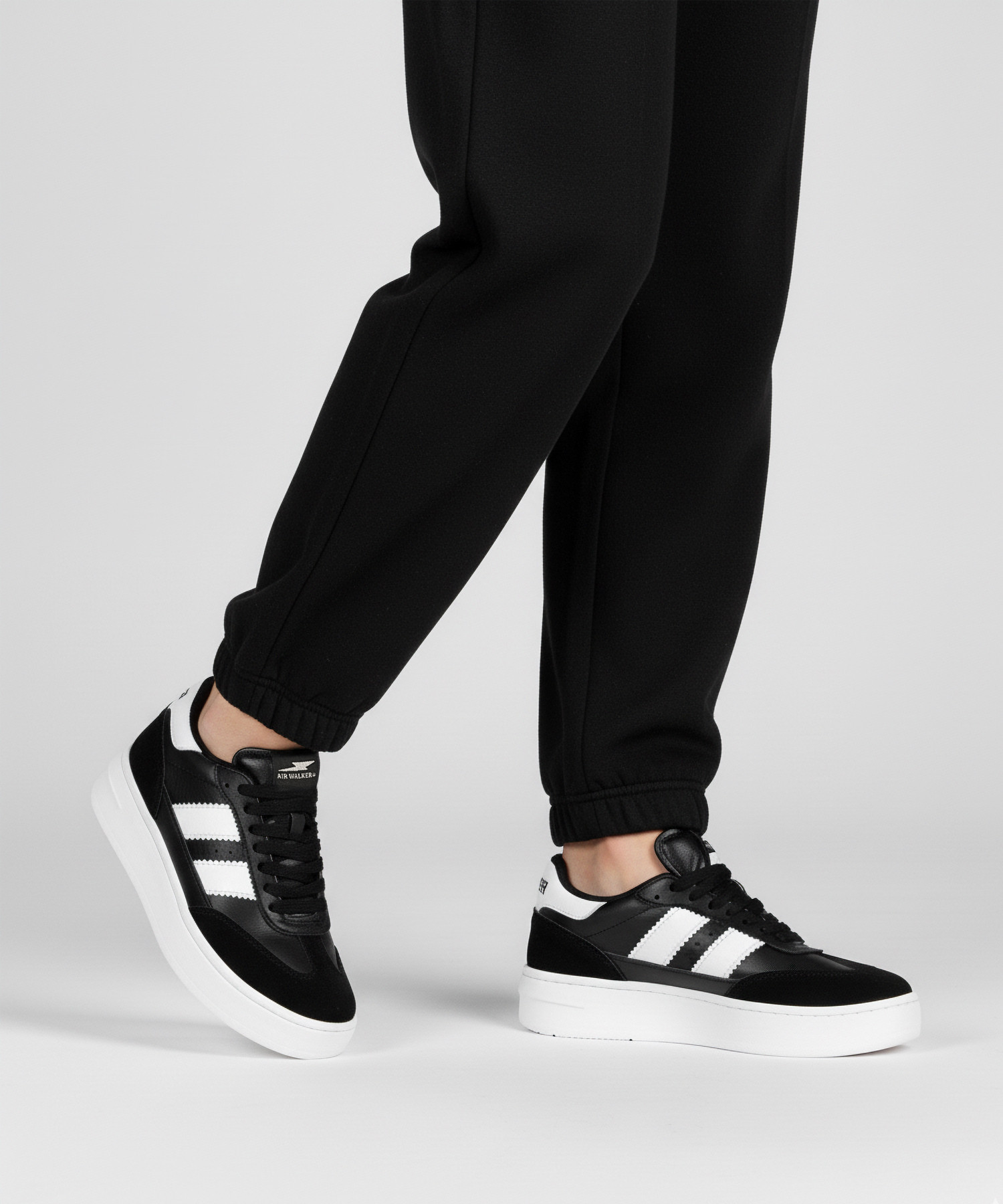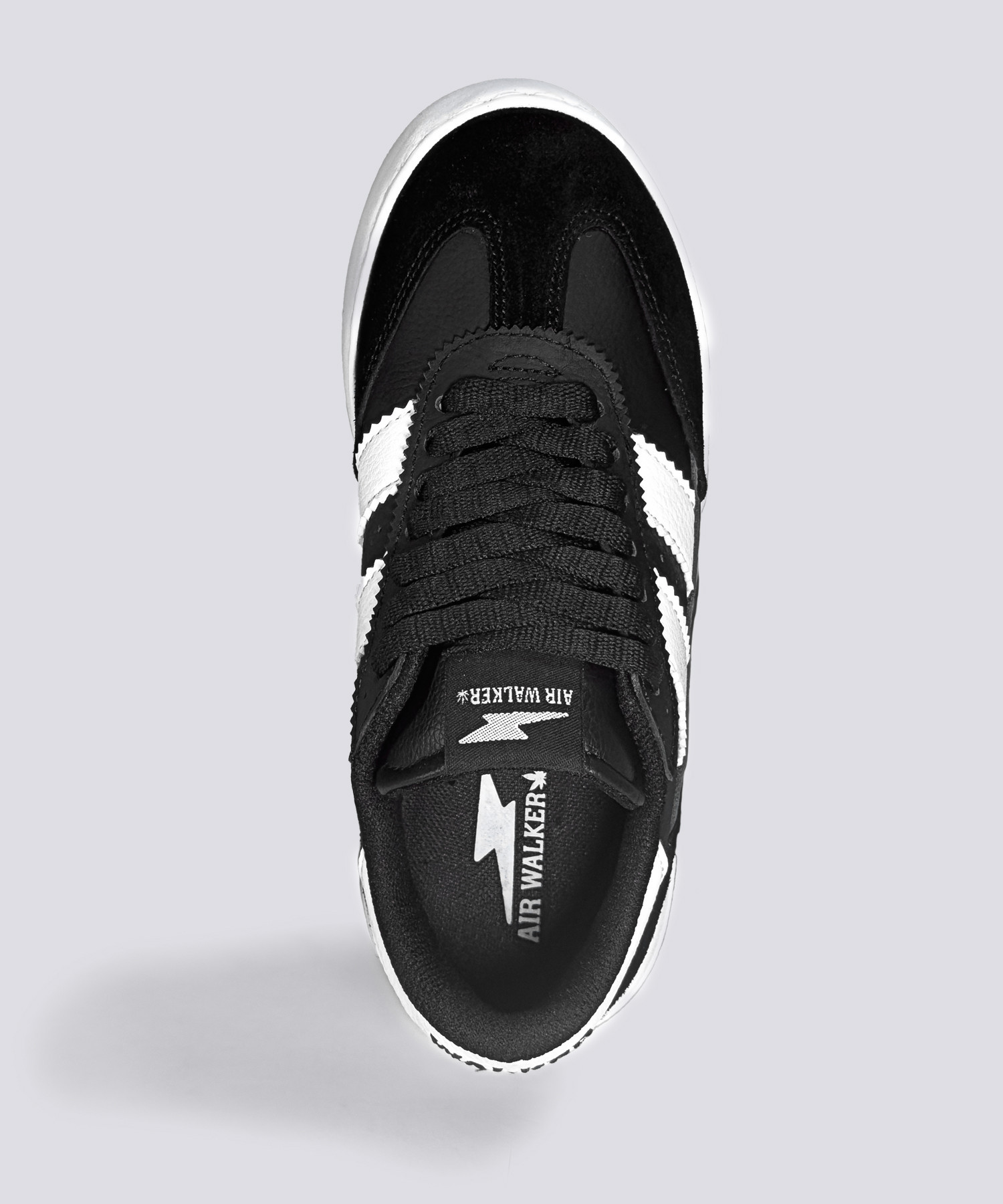 mientras los detalles en gamuza gris refuerzan la puntera y el talón. Sus icónicas franjas laterales en negro realzan el look clásico.